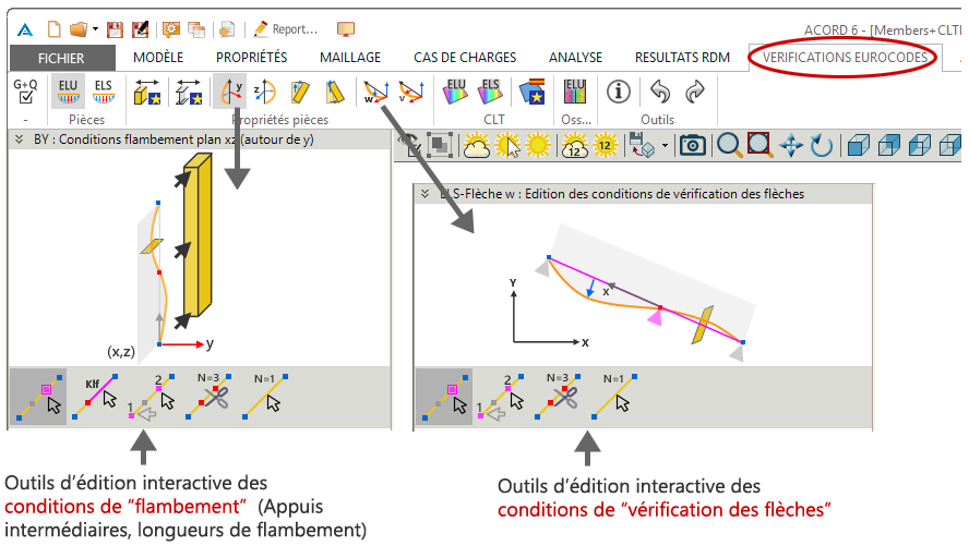 Cette nouvelle version du logiciel permet la modélisation de « jauges de déplacement ». Deux nouveaux outils sont ainsi proposés dans l’onglet « Vérifications réglementaires ».
