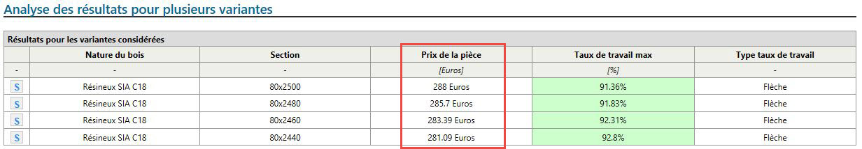 Dans le cas où l’analyse de résultats pour plusieurs variantes était demandée dans une étude poutre, la colonne « Prix de la pièce » n’était pas correctement mise à jour dans le cas particulier où les règles SIA étaient considérées.