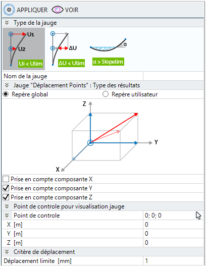 Définition de la position du « point de contrôle » de la jauge considérée. Ce point est important dans la mesure où il sera par exemple utilisé pour la sélection de la jauge considérée. C’est également en ce points que seront affichés les résultats enveloppes pour les points de la jauge.
