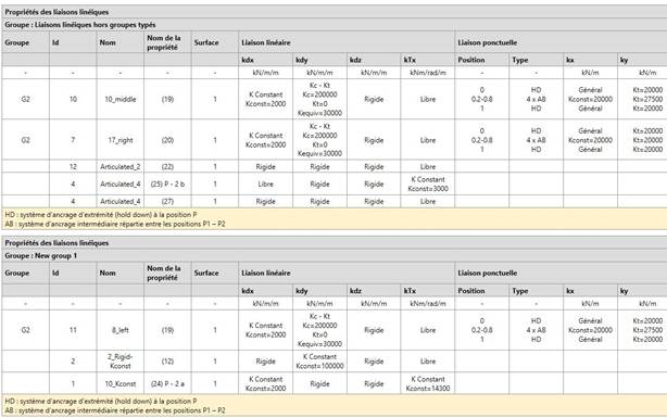 Cet outil permet la définition de liaisons caractérisées par des raideurs réparties et ponctuelles (modélisation d'éventuels « hold downs » ou « angle brackets »). Ces liaisons peuvent tenir compte du comportement non linéaire rencontré en particulier pour les murs soumis à des charges horizontales.